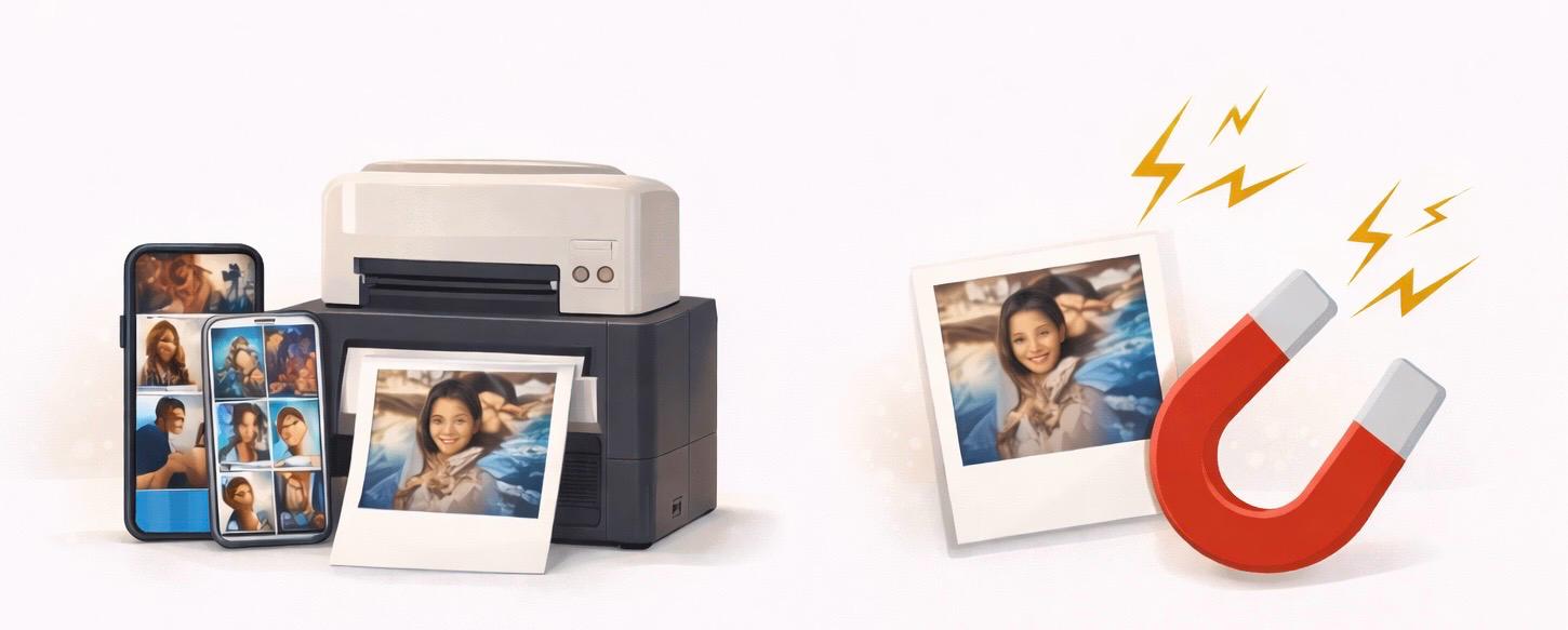 Impression instantanée de photos ou magnets, lancée en Wi-Fi depuis le smartphone.